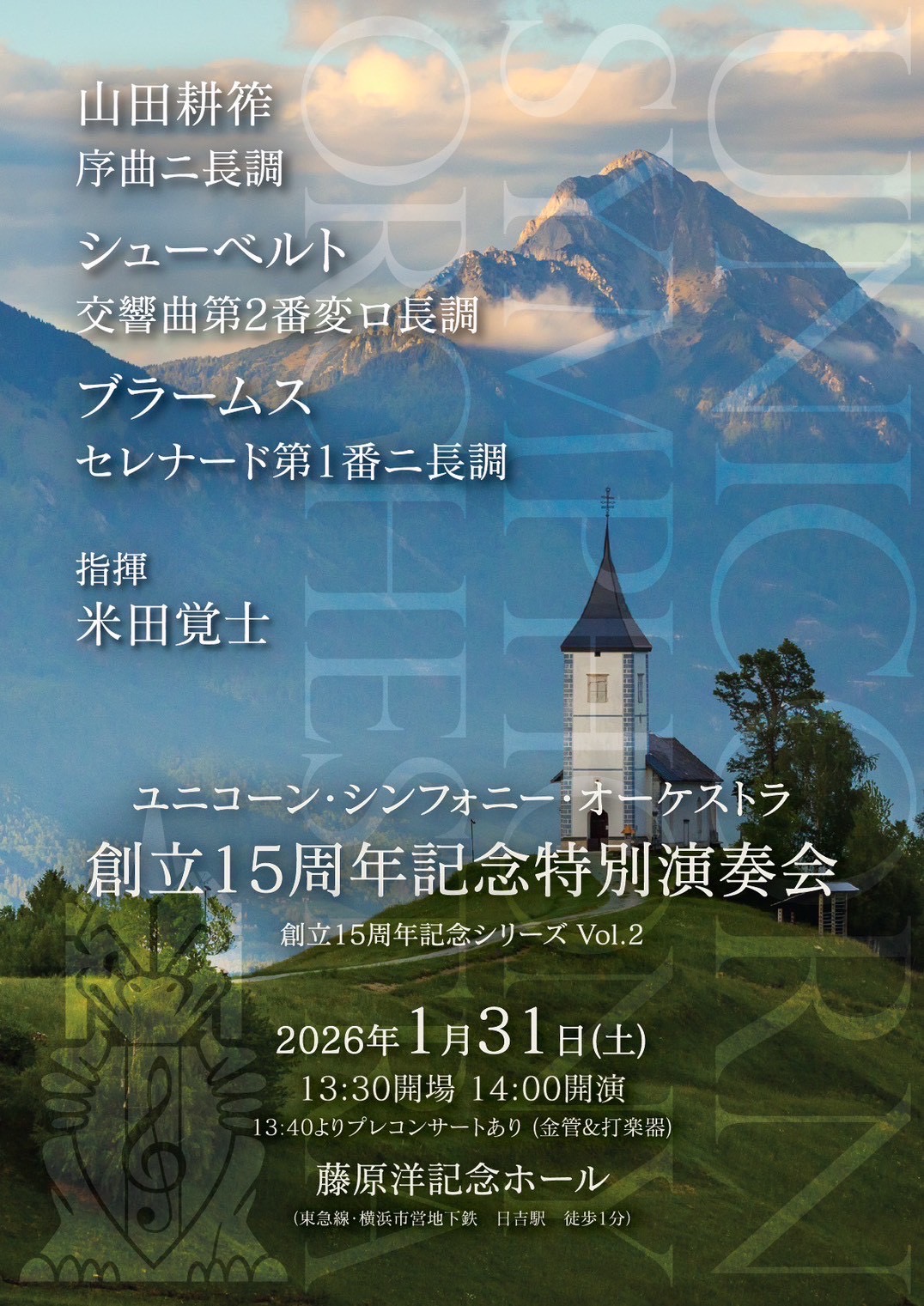 今回のプログラムは、山田耕筰の序曲、シューベルトの交響曲第2番、そしてブラームスのセレナード第1番という、なかなか渋く、通好みの選曲でした。