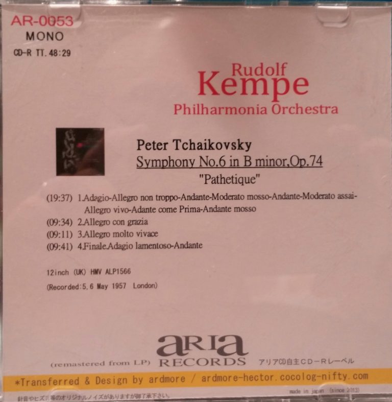 もし僕が、アリアCDの会員でなければ、そして店主の松本大輔氏の著書を読んでいなければ、ケンペ指揮の“悲愴”とは出会わなかったでしょう。